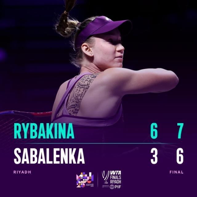 利雅得WTA年終總決賽單打決賽,萊巴金娜2比0戰(zhàn)勝薩巴倫卡,11連勝生涯首奪年終冠軍。萊巴金娜10月24號在WTA500東京站2-0戰(zhàn)勝姆博科,晉級四強并獲得年終總決賽席位,隨后她宣布因傷退賽。年終總決賽,萊巴金娜小組賽三戰(zhàn)全勝,半決賽2比1逆轉佩古拉,決賽2比0薩巴倫卡,以全勝戰(zhàn)績奪冠。萊巴金娜奪冠之路: